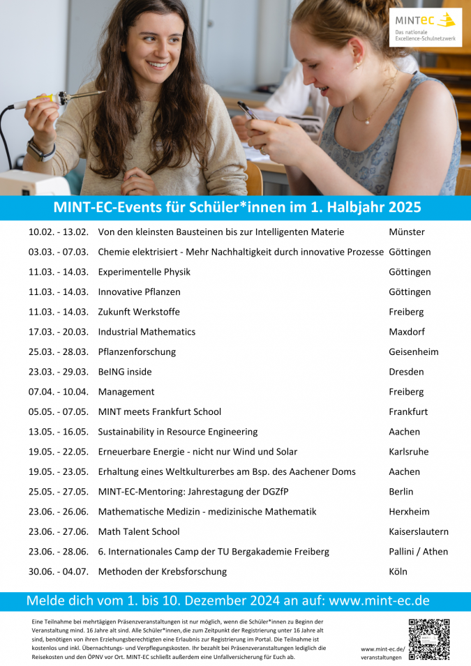 Übersicht MINT-EC-Veranstaltungen für Schülerinnen und Schüler im ersten Halbjahr 2019
